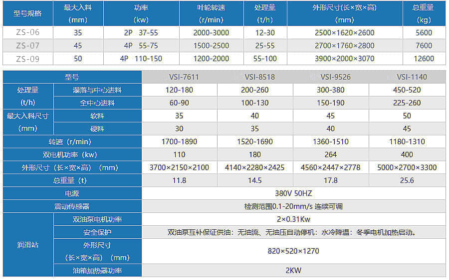 沖擊式制砂機技術(shù)參數(shù)